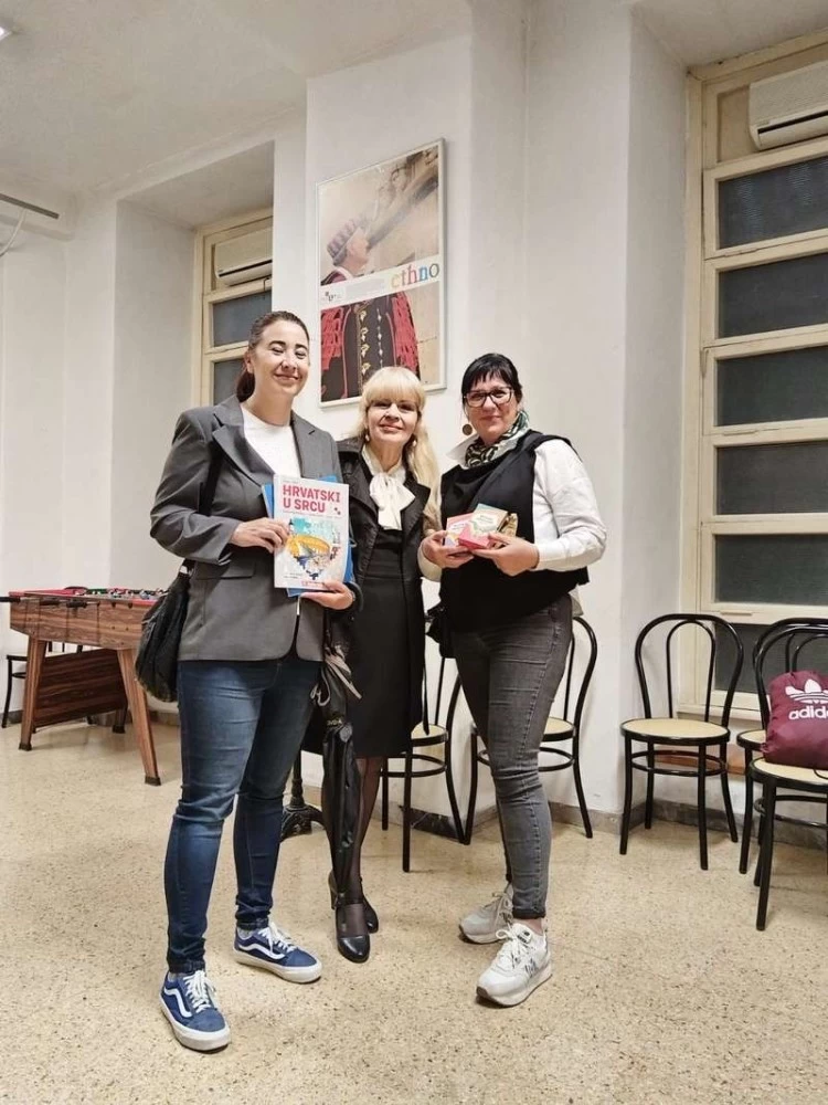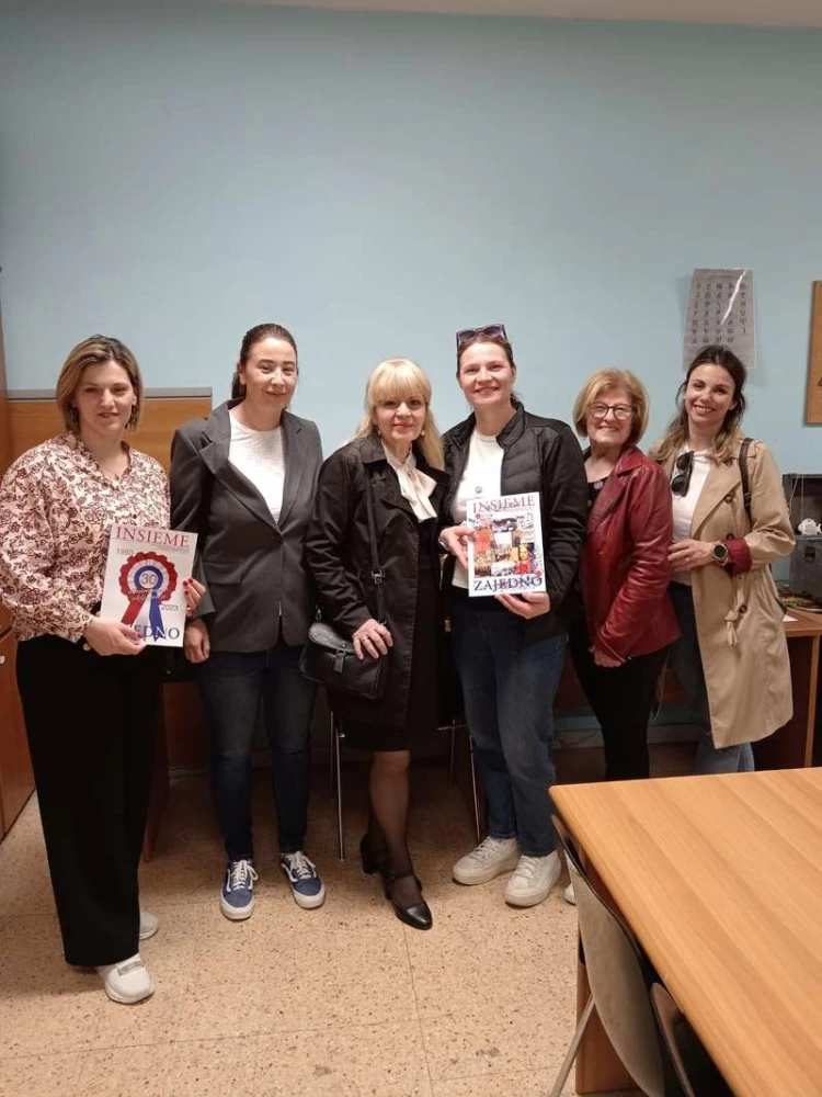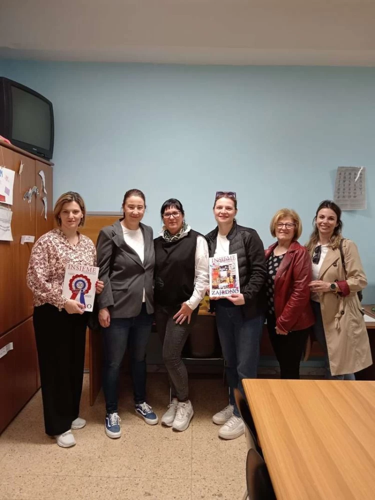 La ”Scuola elementare Blato” di Blato sull’isola di Korčula (Curzola), rappresentata dalle maestre: Fanika Arnautović, Katarina Kovačić, Jelica Separović, Kristina Sardelić e Dijana Ančić durante il loro viaggio dì istruzione - realizzato nell’ambito di Erasmus - hanno visitato il 27 aprile 2025, la “Scuola croata” nella Sala di San Girolamo – sede anche dell’Associazione Italo-Croata - nel Pontificio Collegio Croato di San Girolamo a Roma. Uno dei punti fondamentali del viaggio era l’incontro con l’Associazione Italo-Croata e la loro presidente Svjetlana Lipanović e con Anna Blajić, maestra presso la” Scuola croata”. Inoltre, lo scopo del viaggio era lo sviluppo della cooperazione internazionale tra le scuole e lo scambio delle esperienze lavorative. Le maestre hanno regalato alla “Scuola croata” un manuale scolastico “Croato nel cuore” edito dalla Casa Editrice Školska knjiga, scritto da Dijana Ančić dedicato all’insegnamento della lingua croata all’estero e un quaderno di lavoro. Un altro dono è stato un gioco-memory con quale si desidera preservare il modo di parlare a Blato, creato dagli allievi con le bellissime illustrazioni. La Lipanović ha regalato alle maestre due ultime edizioni della rivista bilingue “Insieme/Zajedno” dove si trovano anche gli articoli inerenti all’attività della “Scuola croata”.