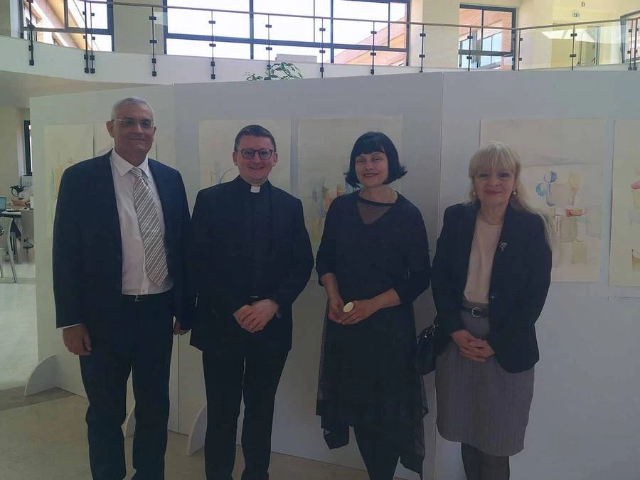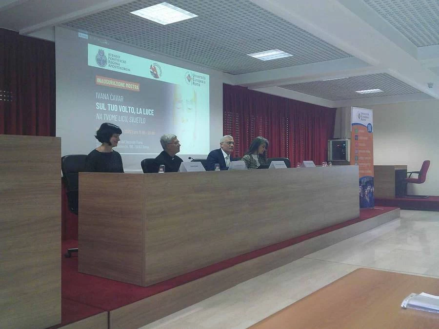 Ivana Ćavar, pittrice accademica croata, nata nel 1973 a Široki Brijeg in Bosnia ed Erzegovina e, l’allieva - all’Accademia di Belle Arti a Zagreb - del grande pittore croato Vasilije Jordan, si è presentata al pubblico romano con la mostra personale “Sul tuo viso la luce/Na Tvom licu svjetlo” che è stata inaugurata il 29 aprile 2025 presso Aula Magna e Atrio del Secondo Piano dell’Università Europea di Roma. La mostra è stata organizzata dall’Ateneo Pontificio Regina Apostolorum, dall’Università Europea di Roma con la partecipazione dell’Associazione Italo-Croata, che ha dato il patrocinio. All’inaugurazione i presenti sono stati salutati da: Prof. P. José Enrique Oyarzun, LC Rettore dell’Ateneo Pontificio Regina Apostolorum, Tea Zupičić, Ministro Plenipotenziario e incaricata d’affari a.i dell’Ambasciata della Repubblica di Croazia presso la Santa Sede, Don Marko Đurin, Rettore del Pontificio Collegio Croato di San Girolamo in Roma, Svjetlana Lipanović, presidente dell’AIC. Svjetlana Lipanović si è soffermata particolarmente - nel suo discorso - sulla storia dell’Associazione Italo-Croata e sulla promozione della cultura e della lingua croata dal 1993. In seguito, sono intervenuti Prof. P. Pedro Barrajon, LC Rettore dell’Università Europea di Roma UER, Prof.ssa Valentina Faloni, Docente di Introduction to History of Art and Visual Education. Il Prof. Massimiliano Valente, associato di Storia Contemporanea presso UER ha introdotto i relatori ed anche ha moderato durante l’evento. Tra i numerosi presenti era anche Nina Karković, consigliera per la cultura presso l’Ambasciata della Repubblica di Croazia in Italia.