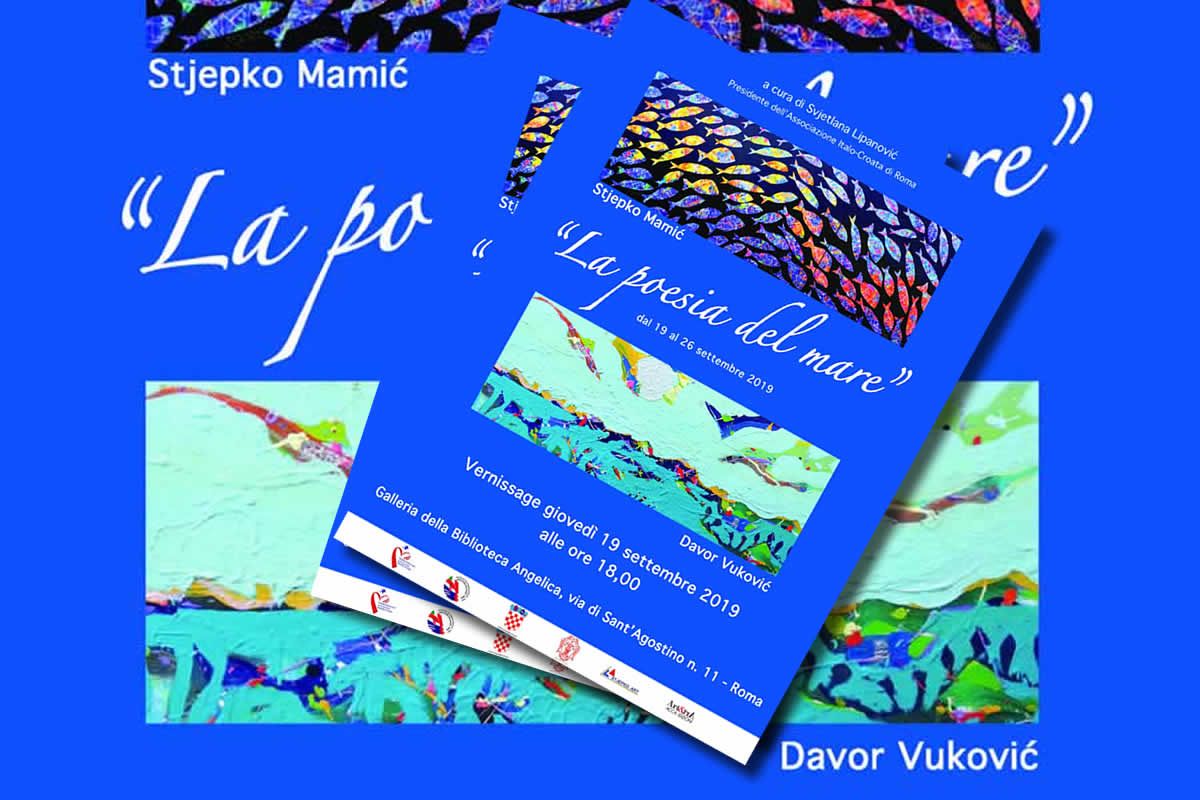 Izložba “Poezija mora” Davora Vukovića i Stjepka Mamića otvorena je 19. rujna 2019. pod pokroviteljstvom Veleposlanstva Republike Hrvatske u Italiji, Središnjeg državnog ureda za Hrvate izvan Republike Hrvatske, Hrvatsko-talijanske udruge iz Rima i drugih, u prestižnoj Galeriji anđeoske biblioteke (Galleria della Biblioteca Angelica) u centru Rima. Kustosica izložbe Svjetlana Lipanović, predsjednica Udruge zajedno sa Nevenom Pelicarićem, veleposlanikom RH pri Svetoj Stolici i dr. Marom Ferloni, likovnom kritičarkom otvorili su izložbu uz prisustvo Marina Vukovića sa obitelji, Stjepka Mamića sa suprugom, Mladenke Šarac Rončević, opunomoćene ministrice pri Veleposlanstvu RH u Italiji i mnogobrojnih uzvanika. Izložba je preko 42 platna prikazala ljepotu morskog i podmorskog svijeta za koji su umjetnici vezani velikom ljubavlju. Otvorenje izložbe snimljeno je od firme Arte24 i moglo se vidjeti tri puta na privatnoj televiziji Rete Oro te nakon toga na You Tube, Facebook-u i mrežnim stranicama Arte24. Objavljeni su članci o izložbi u: “Art&trA”, www.accainarte.it “L’Attualità”, “Giornale settimanale” koji je vidljiv na www.papale-papale.it “Insieme’Zajedno” br. 54/2019 kao i u raznim, hrvatskim novinama.