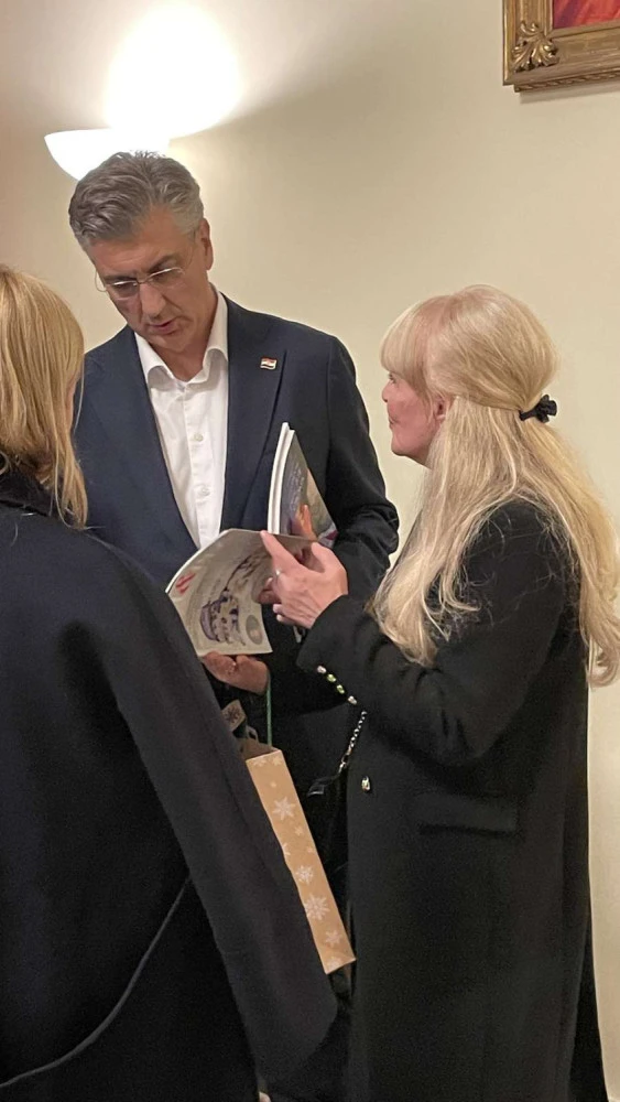 Varie persone hanno donato al Presidente del Governo dei piccoli omaggi; Svjetlana Lipanović, presidente dell’AIC ha regalato l’ultimo numero della rivista “Insieme/Zajedno”, i suoi due libri: “Lo splendore dell’Arte croata” e “La notte delle stelle cadenti”, nonché la rivista “Art&trA” con l’articolo dedicato alla mostra di Josip Račić presso il Museo Nazionale dell’Arte Moderna (NMMU) a Zagabria.
