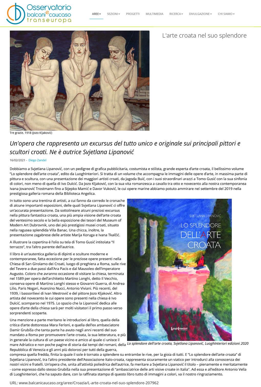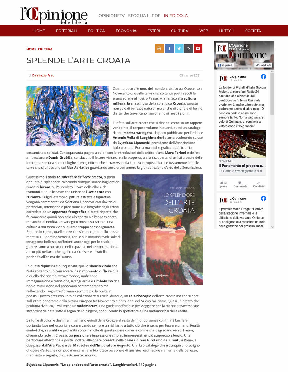 Il libro «Lo splendore dell'Arte croata» di Svjetlana Lipanović è stato pubblicato nell'ottobre 2020 dalla Casa Editrice «Luoghinteriori» di Città di Castello (PG).
